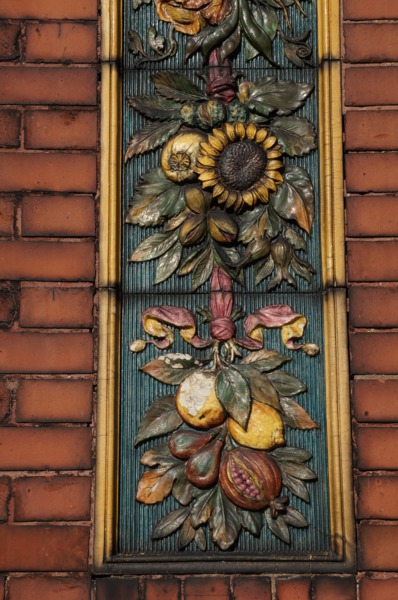 ca. 120.000 Steine und 1.700 glasierte Formstücke in 300 unterschiedlichen Variationen wurden zumeist von Hand angefertigt und verbaut.