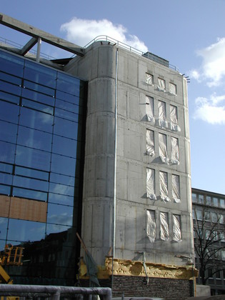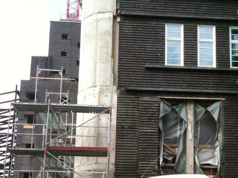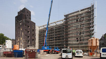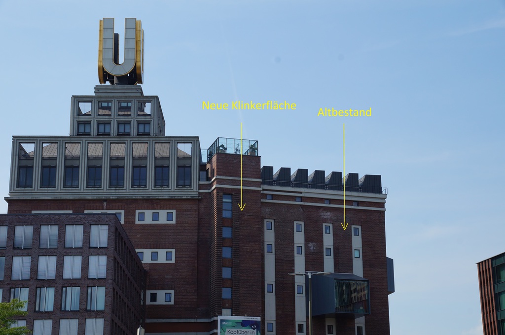 ca. 150.000 Steine wurden in verschiedenen Farbabstufungen, aufgrund des unterschiedlichen Verwitterungsgrades der Fassade, vermauert.